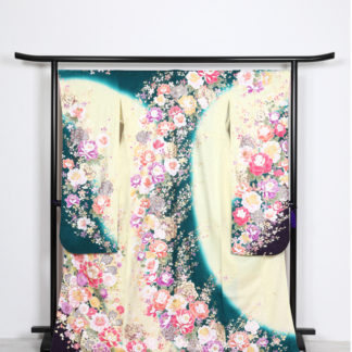 【振袖レンタル】E-4淡黄蘗ぼかし水色疋田