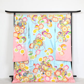 【振袖レンタル】D-5水色鞠牡丹熨斗