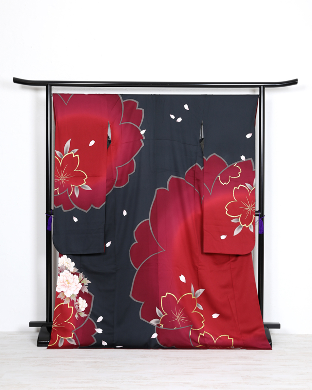 【振袖レンタル】0-6黒茜色桜個