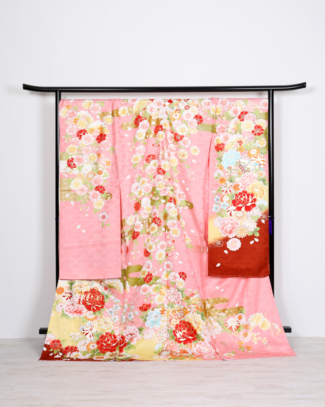 【振袖レンタル】D-7桃花色桜菊裾疋田