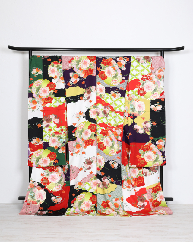 【振袖レンタル】B-4緑紫赤黒刺繍個