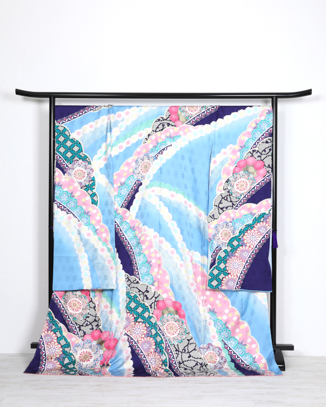 【振袖レンタル】F-5水色吉澤友禅吉田蓑助